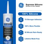 Supreme Silicone Window & Door sealant is a premium, 100% silicone and 100% waterproof sealant that provides a reliable seal in weather-prone areas like windows, doors, basements, roofs, sidewalks, siding, tuckpointing and attics. This sealant offers 100% more flexibility than Class 25 sealants and 7X stronger adhesion than Silicone 1® sealant. And, it offers 50% joint movement capability without cracking, shrinking, breaking down or washing away. This sealant has lifetime mold-free product protection that resists stain-causing mold and mildew growth. Backed by a lifetime guarantee.