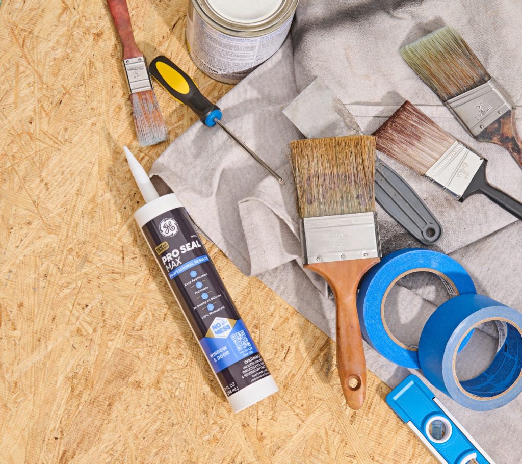 Use painter’s tape along both sides of the joint if you want crisp lines. Cut the sealant tube’s nozzle at a 45-degree angle, pierce the inner foil, and load it into a standard caulk gun. Apply a steady bead along the seam, joint, or gap—working in short sections to maintain control. Immediately smooth the bead with GE’s Sealant Smoothing Tool or a gloved finger to ensure strong surface contact and a clean finish.