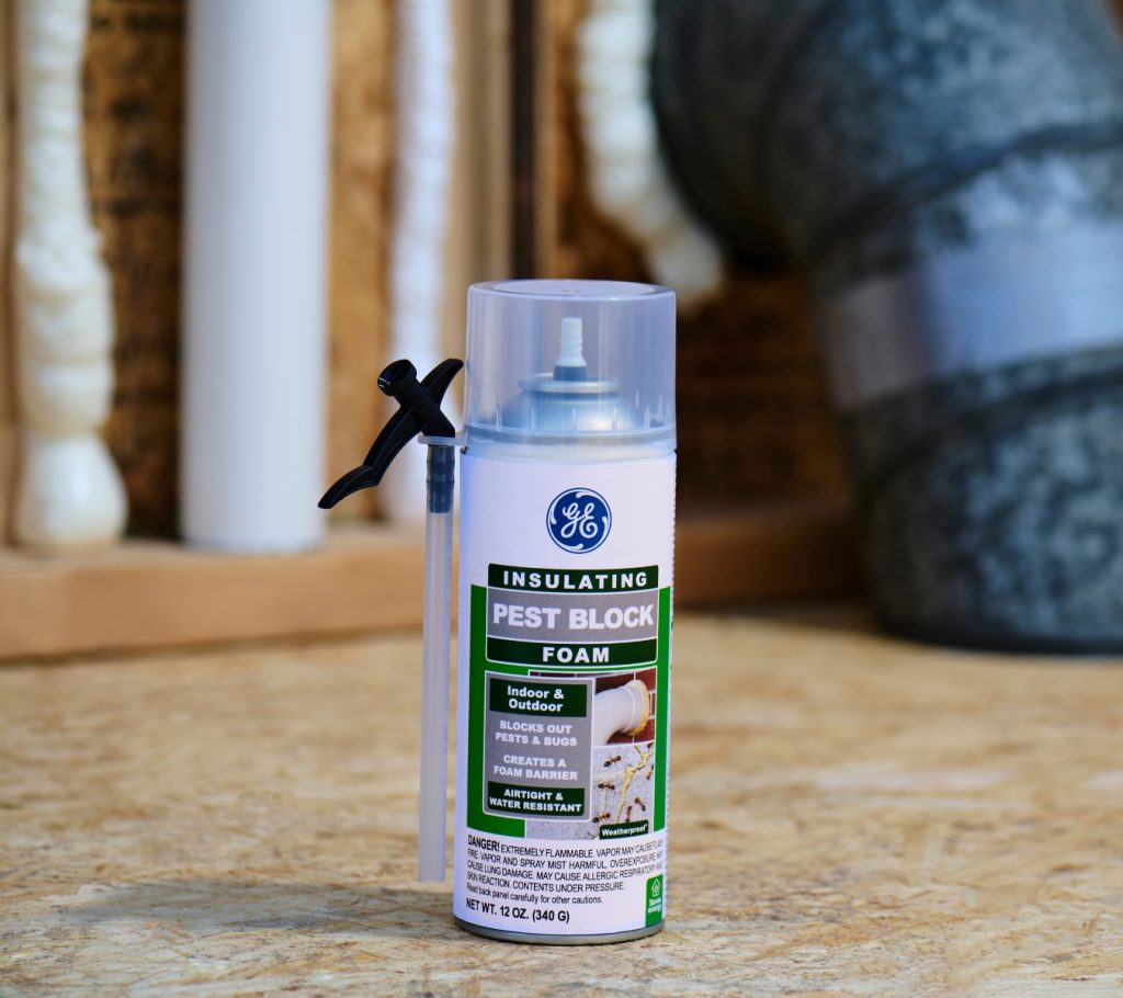 That’s where GE Pest Block Insulating Foam comes in. This insulating foam expands to seal cracks and crevices, forming a barrier that blocks pests from entering your house.