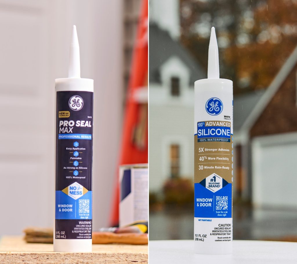 GE Pro Seal Max Window & Door Sealant and GE Advanced Silicone Window & Door Sealant.